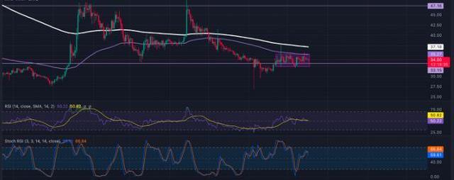 XCH价格目前交易在34.00美元附近,24小时交易量上涨0.15%。