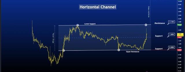 上面的LidoDAO(LDO)图表展示了水平通道模式。水平通道模式也称为横向趋势。一般来说,水平通道是在价格盘整期间形成的。在此模式中,上方趋势线和下方趋势线水平平行,价格走势包含在其中。水平通道通常被认为是适合市场时机的模式之一,因为买卖点正在整合。