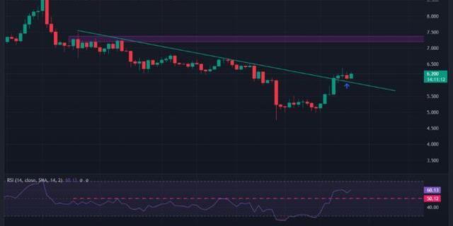 最有可能的情况是LINK价格未来将继续上涨。第一个目标是7.2美元,其次是9.5美元。