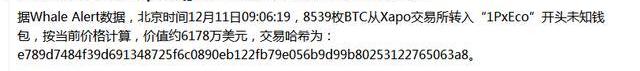 超8500枚比特币从交易所转入未知钱包,价值约6178万美元,北京时间12月11日09:06:19;