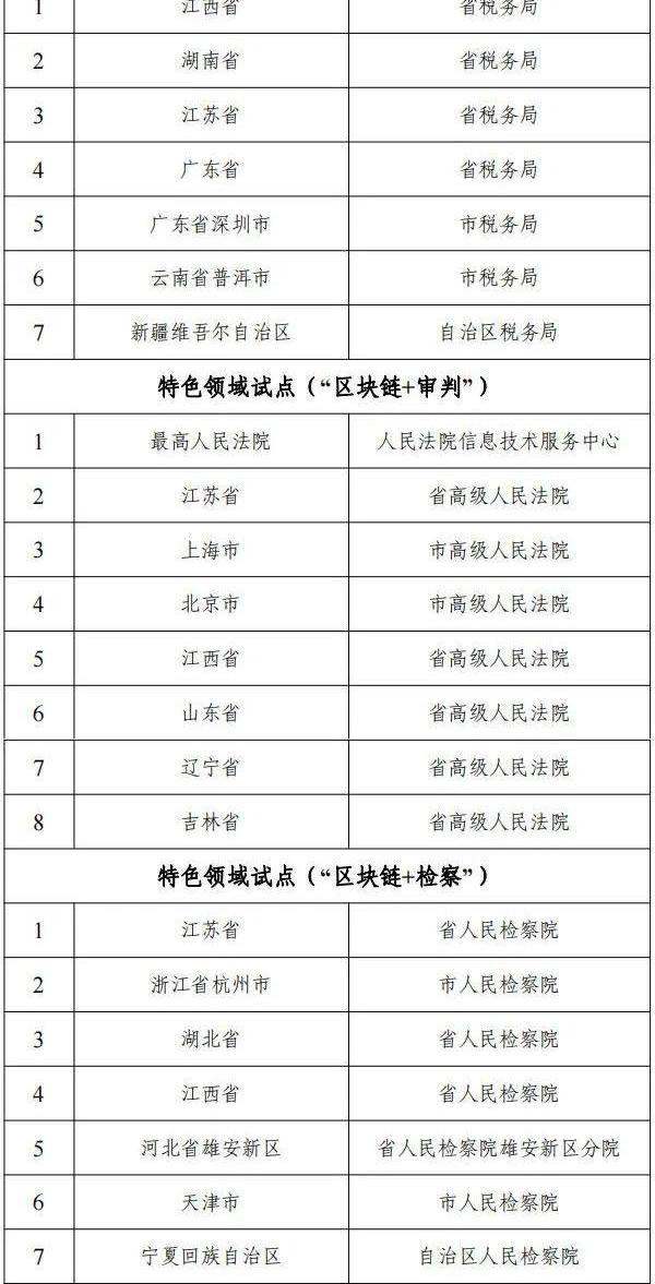 国家区块链创新应用试点名单如下: