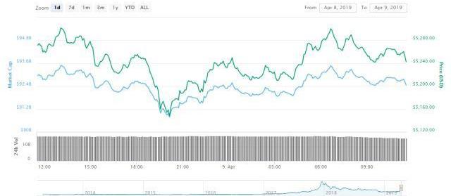 比特币目前的价格是5240美元,上涨了近2%,仅略低于最近创下的5300美元的高点,比特币目前已从每月3800美元的低点大幅上升。