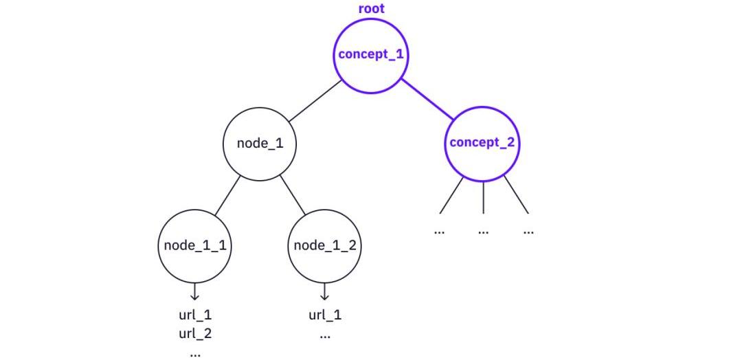 值得注意的是,这里的关键点是树的结构。知识树从根概念到叶子,指向所有对现有Web资源的必要引用。节点之间的关系在这里并不重要。