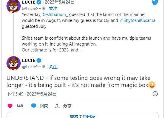 基于这些输入,Lucie宣布团队对Shibarium主网发布的官方预测定于2023年第二至第三季度。根据Lucie的说法,ShibaInu开发团队对Shibarium的进展充满信心,多个专门团队致力于开发,包括专注于人工智能(AI)集成。该声明旨在澄清和阻止在柴犬爱好者中传播有关发布日期的错误信息。然而,LUCIE也承认,测试阶段不可预见的并发症可能会延长时间。