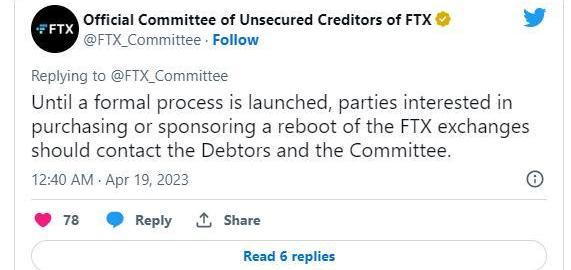 不过,该提案目前尚未谈拢。据FTX无担保债权人委员会官方推特表示:「委员会正在跟债务人合作,评估重启或出售FTX交易所。」但他们也补充,目前并没有重启或出售该交易所的确切时程,并欢迎有兴趣支持FTX交易所的人联系。