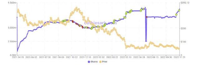 从11月15日开始,这些股票加入了更大一部分的273,327股,该购买在FTX崩溃后仅一周完成。