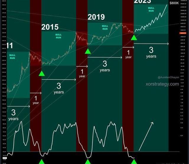 特别是,战略服务平台XOR首席执行官AurelienOhayon在12月28日分享的一份分析指出,比特币的历史牛市每四年发生一次。在这种情况下,他指出,第一次牛市出现在2011年,然后又一次低迷导致了2015年的反弹。事实上,在2018年加密货币冬季之后,Ohayon指出,2019年构成了另一次比特币牛市的基础。
