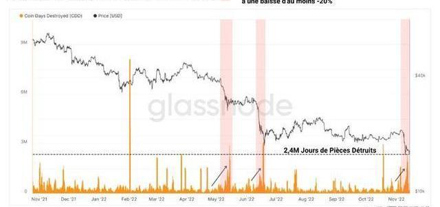 在出现破产信号以及FTX交易所被证明破产之后,比特币(BTC)的价格突破并使位于18,000美元左右的旧熊市底部失效。长期持有者群体表现出显着的反应,在过去一周内减少了近60,000BTC。