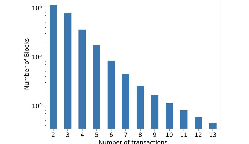 下图显示了可用于MEV提取的具有多个相关AMM交易的区块数量。作者仅在2021年5月之前从三个DeFi协议中对确定性单块MEV机会进行抽样,但结果令人震惊。