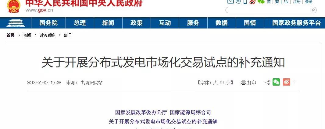 近年来,国家一直在进行电力体制改革。2017年,国家发改委和国家能源局就发布了《关于开展分布式发电市场化交易试点的通知》,明确指出“分布式发电就近利用清洁能源资源,能源生产和消费就近完成,具有能源利用率高,污染排放低等优点,代表了能源发展的新方向和新形态。目前,分布式发电已取得较大进展,但仍受到市场化程度低、公共服务滞后、管理体系不健全等因素的制约”。