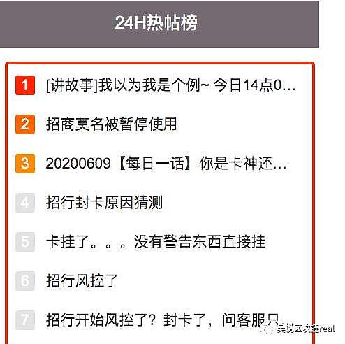 另一方面,近期招商银行正在“疯狂”禁封信用卡,某信用卡社区的热门贴均为封卡贴,但并不一定与加密货币相关,可能是突然升级的严打举措。