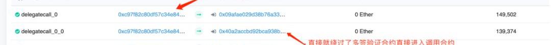 由于攻击者获取的签名数据是正确的,所以通过了验证多签的阶段,之后就开始执?了攻击合约的multiSend函数