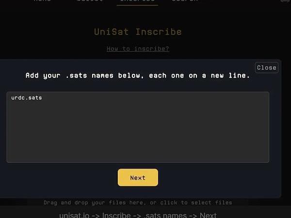 步骤2:在Inscribe选项卡添加你的.sats域名