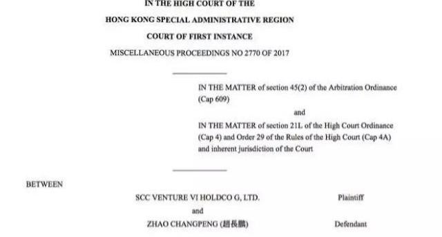 随后,红杉资本又在2018年1月作为申请方提出了仲裁通知。在接下来的几个月里,双方在2018年陆续向香港国际仲裁中心提交了各种证据并进行仲裁。