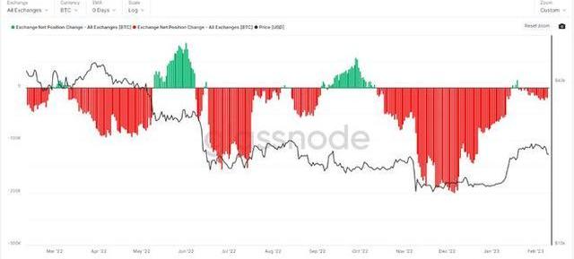 本周BTC的交易所净头寸变化为负,这意味着投资者正在将比特币从交易所转移到仓库。然而,这种趋势的转变表明投资者正在对BTC的近期前景持谨慎态度,并将代币发送到交易所出售。