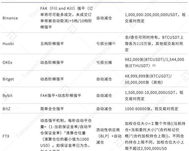主流交易所USDT永续合约风控机制,来源:TokenInsight