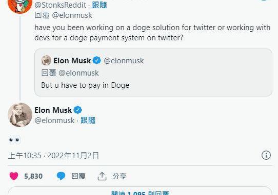 狗狗币社群对推特支持狗狗币支付相当期待。马斯克曾提出开放推特接受狗狗币支付的想法,他在今年4月发推表示「或许可以选择用狗狗币支付?」,他还在今年6月发推强调「我会继续支持狗狗币」。