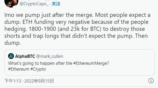 BTC和ETH价格目前在相当长的一段时间内分别上涨了20,000美元和1600美元左右。因此,据信即将举行的活动将价格分别提升至23,000美元和1800美元以上。然而,这些峰值将在合并后立即发生,但根据受欢迎的分析师Capo的说法,飙升之后可能会出现显着下降。