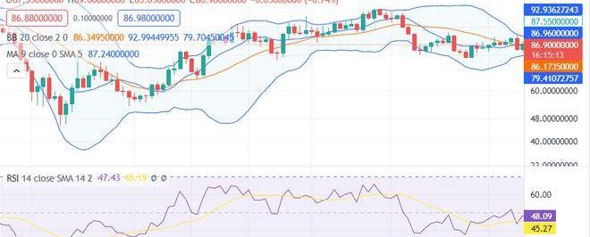 4小时Aave价格分析有利于看涨,因为在过去几个小时内检测到AAVE/USD价值强劲上涨。多头一直致力于重新夺回他们在市场上的领先地位,到目前为止,他们的进展令人着迷。由于看涨趋势,价格在过去四个小时内上涨至87.80美元。总体而言,过去12小时价格走势一直在上涨。