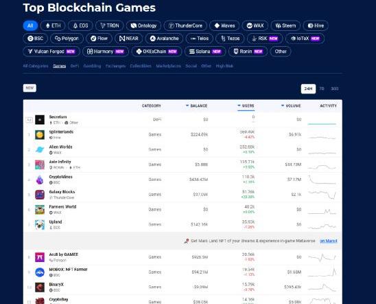 “权威”网站之一,下边链接可跳转到链游页。可以观测不同链上的链游热度资金情况。网站数据相对靠谱。