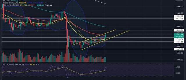 此外,价格上涨表明比特币遵循上升的平行通道;图案。截至发稿时,比特币价格交易于17740美元并重新测试该模式的阻力趋势线。