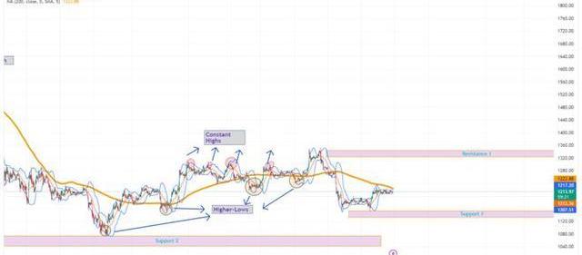 接近12月中旬,ETH获得了触及阻力位1($1320-$1350)的势头。在ETH达到阻力位1后不久,它暴跌至支撑位1。目前,ETH在1200美元附近盘整,其上方的200日均线是直接阻力。如果多头大力推动ETH,那么它的目标可能是达到阻力位1。