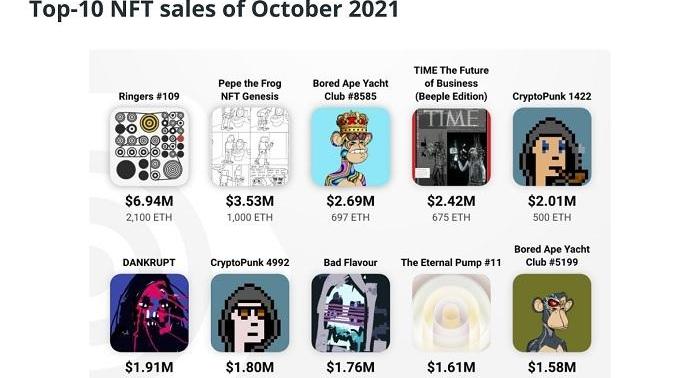 2021年,NFT逐渐拓展到了多个垂直领域,而且交易量增长极快。