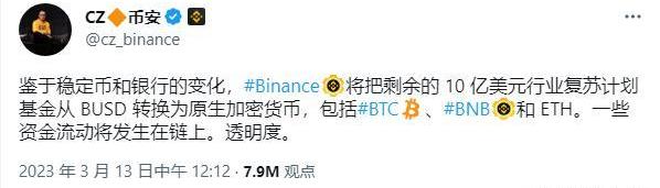 3月13日,BNB硬币与比特币一起成为加密货币中表现最好的资产之一。然后,Binance首席执行官赵长鹏表示,该交易所将把行业复苏计划基金的10亿美元转换为BNB和比特币等其他代币。