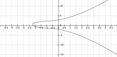 通过方程我们画出了曲线y^2=x^3+3的图像,但是说这就是椭圆曲线的图像其实并不准确。准确地说,我们画的是在实数域上这个方程的图像。在复数域上当然有更多的点也满足曲线方程但是我们的图像中并没有体现,例如。如果把曲线看作点的集合,那数域的扩张直接影响到我们要讨论的这个集合的大小,这在本文后半部分我们还会看到。