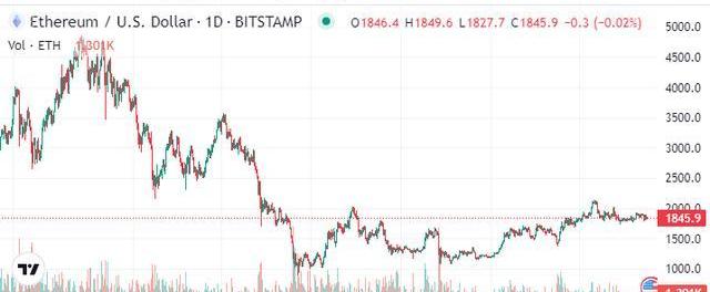 ETH/USD在今天的交易中攀升至1,861.14美元的高点,距离跌至1,831.26美元的底部不到24小时。