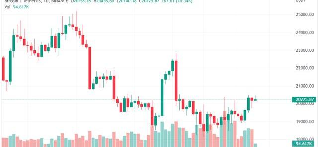 在过去的24小时价格图中,顶级领先的加密货币项目获得了积极的势头。比特币已经突破了2万美元的关键价格水平,上涨了0.75%以上。根据CoinMarketCap的数据,比特币目前的交易价格接近20.3K美元,盘中高点为20,456美元。