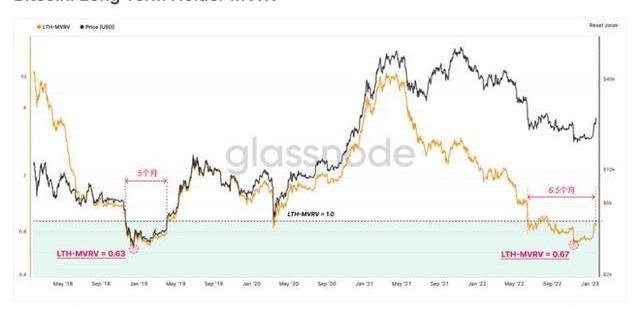 考虑到LTH-MVRV在1以下交易的时间长度和最低值,到目前为止,正在发展熊市与2018-2019年非常相像。