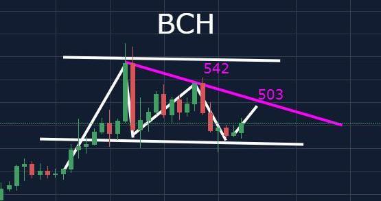 还有很多朋友问我关于BCH的走势,我想说的是如果BCH此举不能突破542美金,将会在503左右就会迎来新的一波跌幅,甚至可能都到不了503美金。
