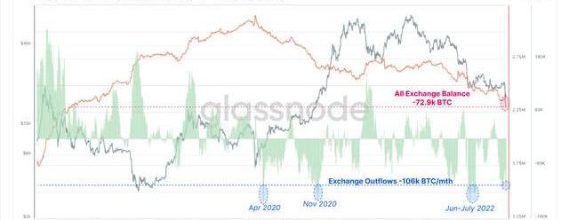 Glassnode表示,加密货币交易所现在正以每月超过1.75亿美元的BTC的速度见证大量比特币外流。