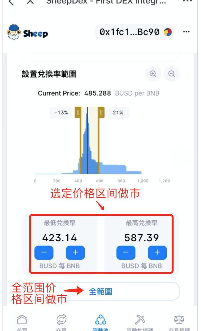 另外,在SheepDex平台中,LP还可以设定在多个价格区间提供流动性,甚至这些价格区间还可能出现重叠,从而创建更复杂的做市策略。
