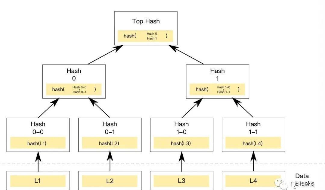 默克尔树最大的作用便是快速校验部分数据是否在原始数据中。