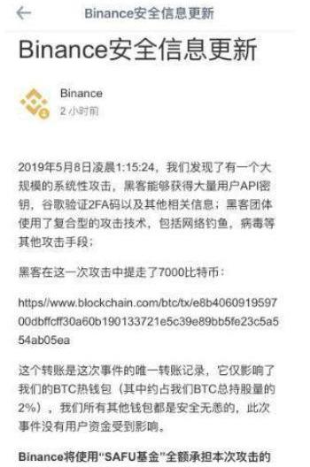 头部虚拟币交易平台币安官方公告,5月8日凌晨,币安交易所发现了大规模的安全漏洞。此次攻击中,黑客在区块高度575012处从币安热钱包中盗取7000枚比特币,价值约达3亿人民币。