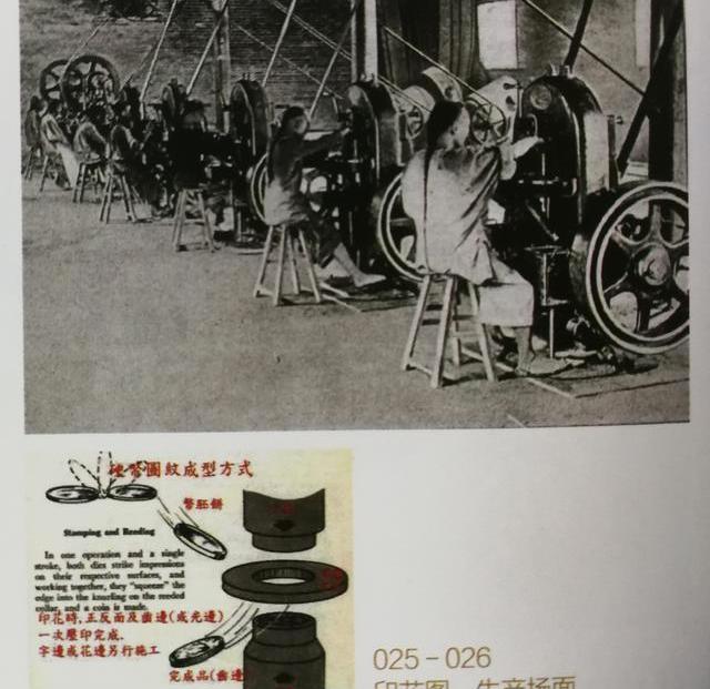 摘自《中国铜元收藏十二讲》机制币的冲压生产场面。