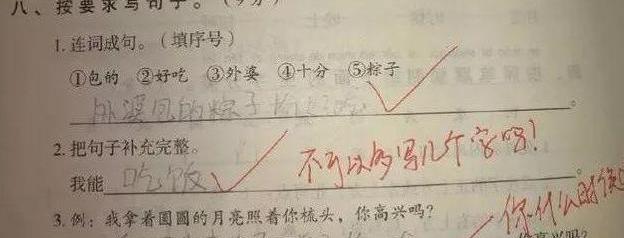 不过这个小学生的老师好像很无奈,看到孩子的答案又气又笑:孩子的思维真的很好,智商也很高,再这样下去,我都教不了了。