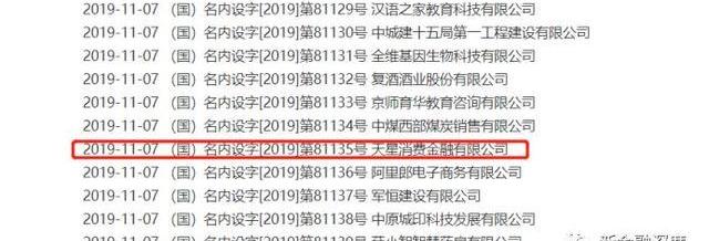 新金融深度查询发现,据市场监管总局2019年11月07日发布的企业名称申报登记公告,来自登记注册局的信息显示,确有收一条天星消费金融有限公司的申报登记,编号为名内设字第81135号。