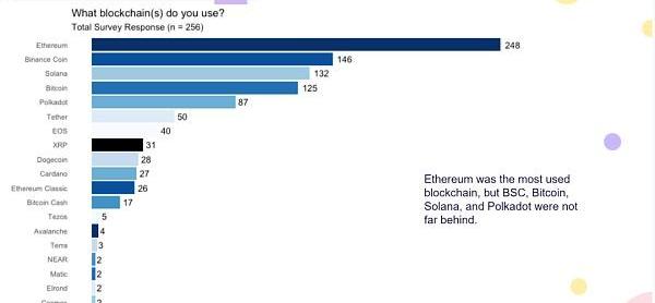 此外,调查报告还涉及这些DAO组织成员主要使用的底层区块链项目、最喜欢的DApp项目与最常用的Web3工具,靠前的底层区块链项目分别是以太坊、BSC、Solana、比特币与波卡,靠前的Dapp项目分别是Uniswap、Opensea、Sushiswap、Zapper与Gnosissafe,靠前的Web3工具分别是Poap、Snapshot、Gitcoin、Rabbithole与Gnosis。
