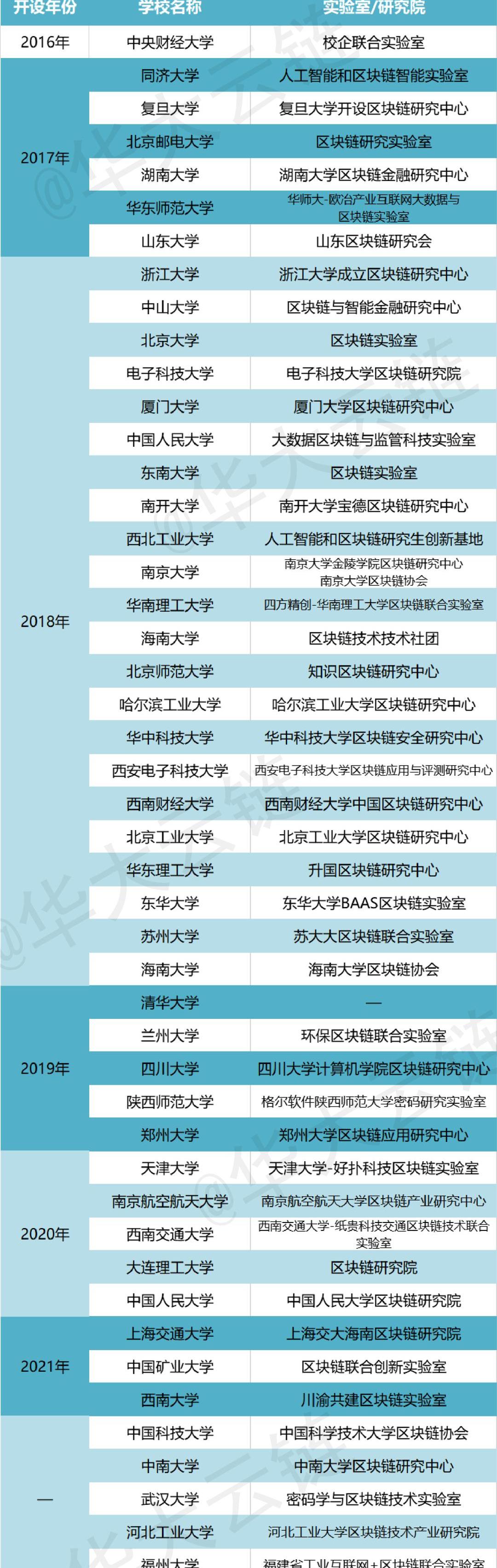 目前全国已有16所学校开设“区块链工程”本科专业: