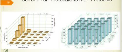 现在互联网网络协议已经使用46年了,而基本协议还是一样。在互联网时代,每几年技术就会翻新。但是现在协议居然已经有46年的历史。而且现在的协议性能和延迟相关。由于这特性,网络一些特殊生态出现。例如在纽约交易所旁边,挤满了证券商,因为他们需要争取几毫秒的通讯优势,如果公司离交易所远,系统性能降低,如果离的很远,性能差距大。这不是物理现象,而是协议没有优化的现象。我们已经开发出网络协议MEF,如下图右下方。在新协议下,传统网络生态就会有改变。