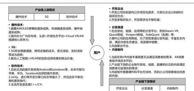 产业链上游的产品已经逐渐成熟,VR头显已经有相对比较成熟的移动端OculusQuest、PicoNeo2,PC端ValveIndex、HTCvivecosmos、小派等,AR头显目前最好的是微软的HoloLens,其次就是国产的亮风台HiARG200、CoolpadXview,苹果、OPPO、vivo等都出了概念AR眼镜在未来上市,但是高昂的价格和技术等影响,尚未完全成熟到能够朝着消费端过度。