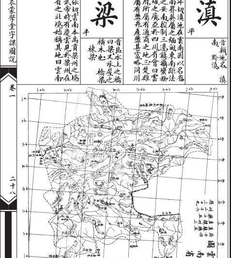 再来看云南省之谓。第一个字是“滇”:“池名。”滇即滇池的简称。书中言:“滇池在云南,因以名省。西南界英属之缅甸,东南距法属之安南,控制三边,镇摄蛮族。疆域之广,亚于四川。省会曰云南府,所属有通商之地三,楚雄府属有盐井,产盐甚富,略同川省。”
