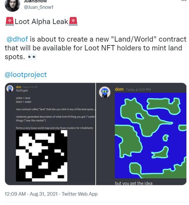 当然DomHofmann的野心也不可能只是给玩家提供“砖瓦”那么简单,从@Juan_Snow1透露的信息来看,Hofmann正在计划在Loot的基础上打造一个元宇宙,可能与地产NFT相关,如果顺利的话,Loot姊妹项目将会随之诞生。