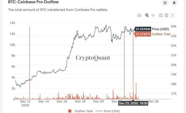 正如链上分析资源CryptoQuant所记录的那样,本周仅以机构为中心的交易所CoinbasePro就出现了两次大笔提现,每次提现超过12,000BTC。