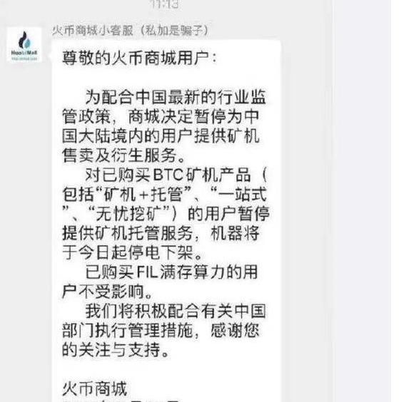 23日晚间,虚拟货币又一次集体崩盘,其中比特币一度跌超16%,莱特币一度跌超30%,以太币一度跌超20%。据比特币家园网数据显示,日内又有243506万人被“血洗”,97亿资金“被埋”。5月23日,有投资者晒出一则来自火币商城客服在微信社群的公告。该公告称,为配合中国最新的行业监管政策,商城决定暂停为境内的用户提供矿机售卖及衍生服务。对已购买BTC矿机产品的用户暂停提供矿机托管服务,机器将于今日起停电下架。已购买FIL满存算力的用户不受影响。我们将积极配合有关中国部门执行管理措施,感谢您的关注与支持。对此,有网友戏称火币又开始“拔网线”。