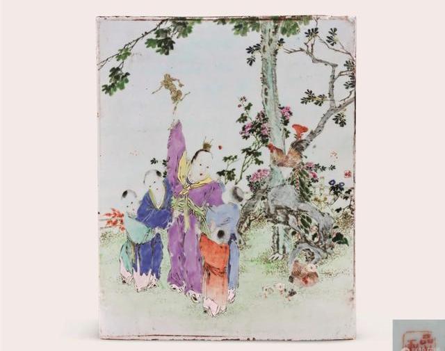 Lot4197清光绪金品卿浅绛彩五子夺魁图瓷板