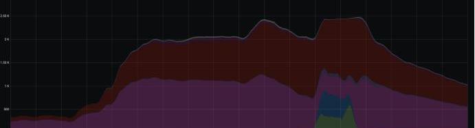 我们可以看得到在图一在UTC时间16:00之前状态峰值相对于来说处于一个稳定的状况,自ICPunks第一批百名单开始之后,大批流量涌入通过边界节点不断的发起调用请求之后,子网节点开始返回403结果,而在UTC时间20:00ICPunks全面启动的的时候,返回403结果的数量更是达到了一个新的临界点。而在图二中ICPunks全面开启之后返回202结果只有少数部分这意味在ICPunks从20:00开始之后只有少部分人的调用请求被受理了,而大部分人的调用请求被节点拒绝,也就能表明当时出现Chaim界面之后只有少数人可以索取,大部分用户则是被拒绝请求的。